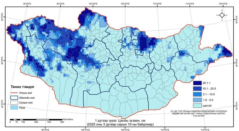 Цаг уурын байгууллагаас гаргадаг арав хоногт нэг удаа хийдэг хээрийн цасны хэмжилтийн мэдээгээр гуравдугаар сарын 10-ны байдлаар нийт нутгийн 30 гаруй хувьд цастай байна.