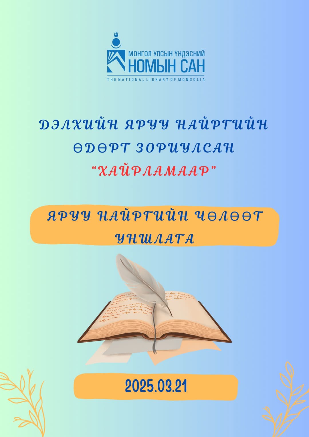 “ХАЙРЛАМААР” яруу найргийн чөлөөт уншлага 2 хэсэгтэй.