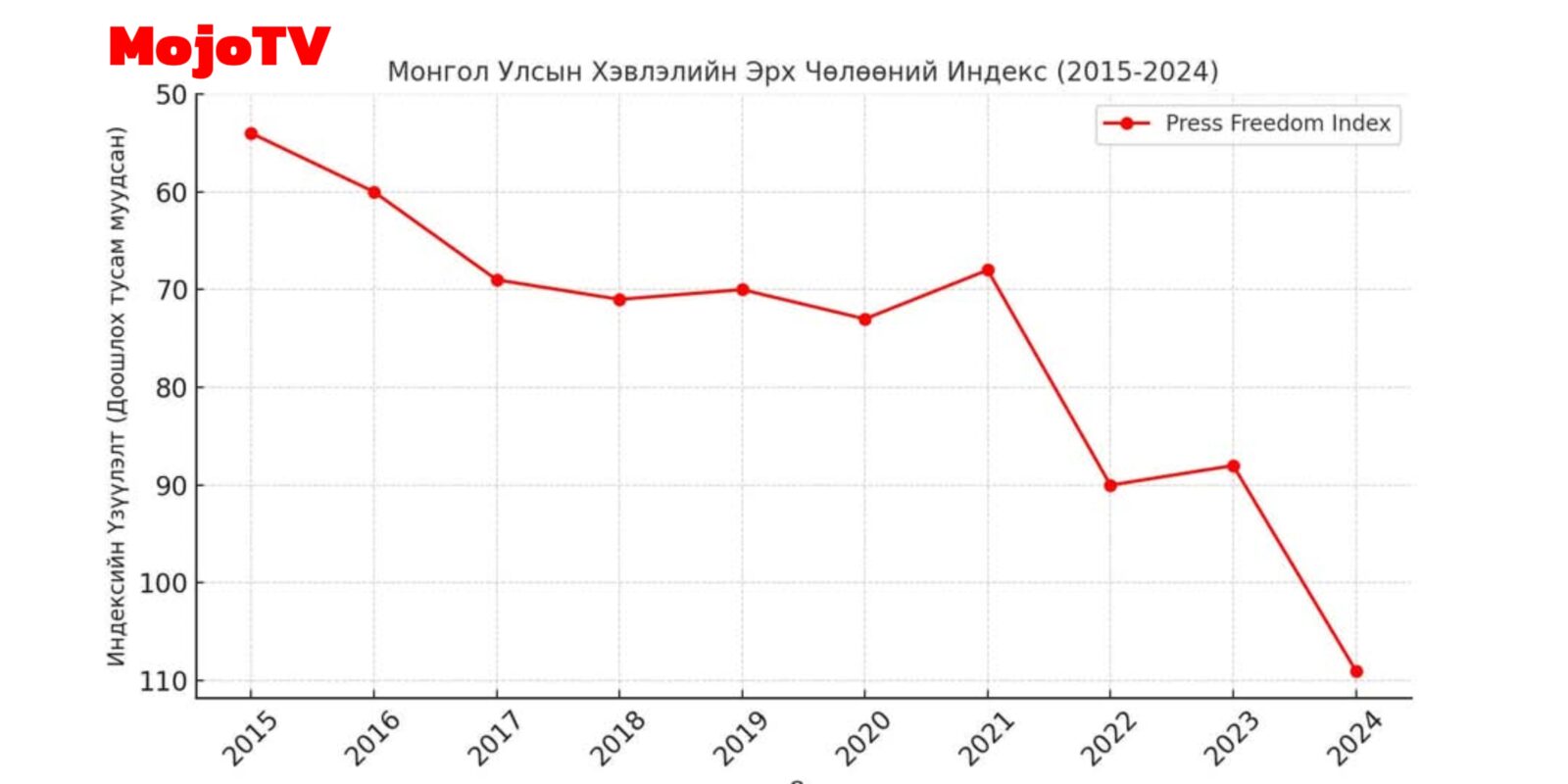 Монгол Улсын хэвлэлийн эрх чөлөө хэрхэн уруудаж буйг сүүлийн 10 жилийн үзүүлэлтээр харууллаа.
