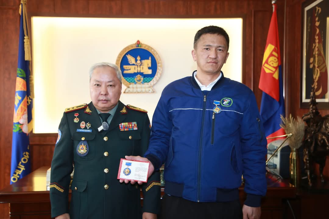 Тиймээс ОБЕГ-ын дарга, хошууч генерал Г.Ариунбуян өнөөдөр Д.Азжаргалыг хүлээн авч уулзан, Онцгой байдлын албаны “Онцгой үйлстэн” тэмдгээр шагналаа.