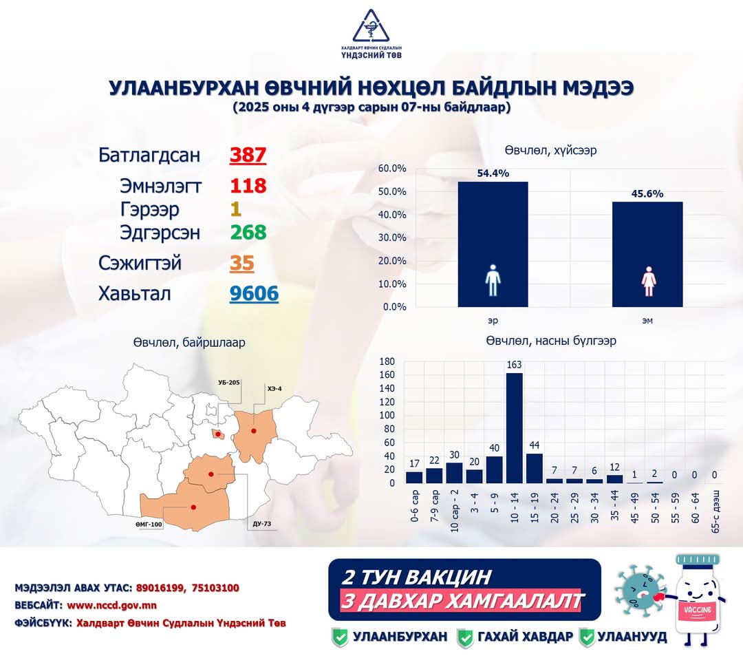 Эрүүл мэндийнхээ төлөө иргэн бүр хариуцлагатай байж, халдвараас сэргийлцгээе. Тодруулах, лавлах зүйл байвал ☎89016199, 75 103 100 утсанд хандана уу.