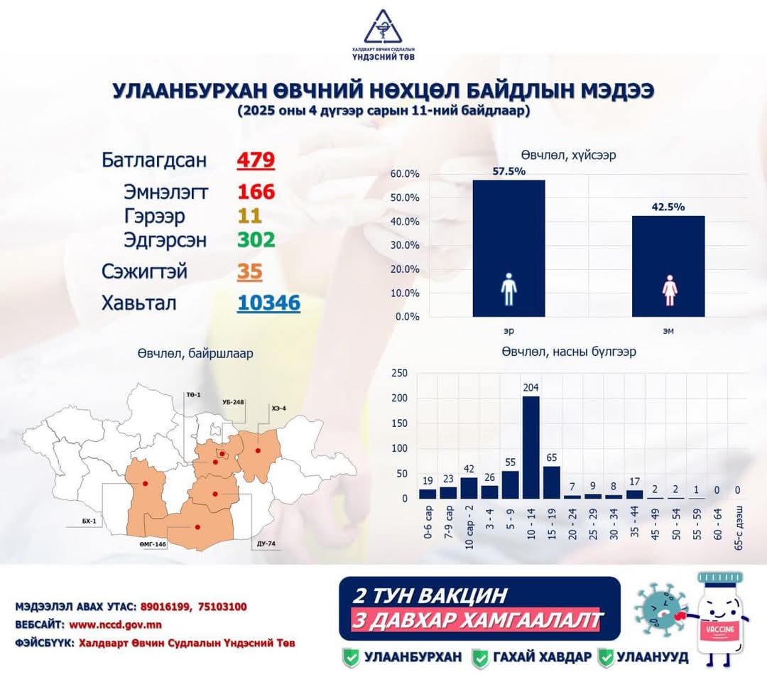 Эрүүл мэндийнхээ төлөө иргэн бүр хариуцлагатай байж, халдвараас сэргийлцгээе. Тодруулах, лавлах зүйл байвал ☎89016199, 75 103 100 утсанд хандана уу.