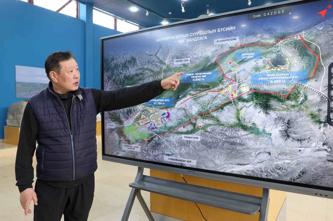 Хархорум хотыг байгуулахаар Ерөнхийлөгчийн зарлиг, УИХ, Засгийн газрын холбогдох тогтоолуудыг гаргасан байдаг. Энэ дагуу Засгийн газрын 2024-2028 оны үйл ажиллагааны хөтөлбөрт тус хотын байгуулалтыг хэрэгжүүлэхээр тусгасан. Хархорум хотын тал хувийг ногоон байгууламжтай, сэргээгдэх эрчим хүчээр цахилгааны хэрэглээг шийдэхээр эхний ээлжид төлөвлөж байгаа бөгөөд хангайн бүсийн эдийн засгийн тулгуур хот болгох бүрэн боломжтой гэдгийг төсөл хэрэгжүүлэгчид Ерөнхий сайдад танилцуулав. Эртний нийслэл Хархорум хотын туурийн хайгуул, малтлага, судалгааны ажлыг эрчимжүүлэх, УБ-Лүн чиглэлийн 6 эгнээ, 101.7 км, Лүн-Хархорум чиглэлийн 4 эгнээ, 189.6 км авто зам, УБ-Хархорум чиглэлийн 1-р зэрэглэлийн төмөр замын зураг төсөл, бүтээн байгуулалтын хөрөнгө оруулалтыг шийдвэрлэх зэрэг эхний ээлжид тулгамдаж буй асуудлууд байгаа аж.