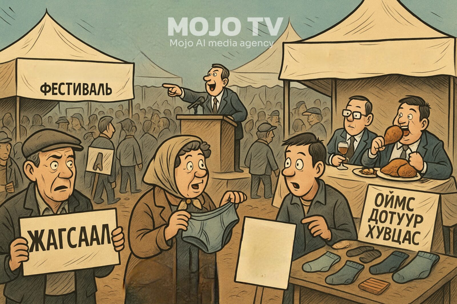 Эрх баригчид олон нийтийн дуу хоолойг сонсохын оронд, үгүйсгэхэд улам нарийн аргууд хэрэглэж эхэллээ. Энэ сарын 11-нд олон нийт жагсаал хийхээр төв талбайд цуглацгаая хэмээн зэхэж байсан ч эрх баригчид энэ боломжийг уран аргаар хаав. Талбайг тэд “үнэгүй хоолны фестиваль”, “үнэгүй цирк”, худалдаа наймаа, морь малаар дүүргэж, хоол унд, дуу хуур, жижиглэнгийн худалдаагаар жагсагчдын орон зайг үгүй хийв. Ард түмэн “Жагсаал хаана болоод байна?” хэмээн гайхацгааж байна. Үнэн хэрэгтээ тэд иргэнийхээ хувьд дуу хоолойгоо хүргэхээр ирсэн ч анхаарлыг зориуд өөр зүйлд татаж оймс бандааш сонирхсон шигээ салхилах аж.