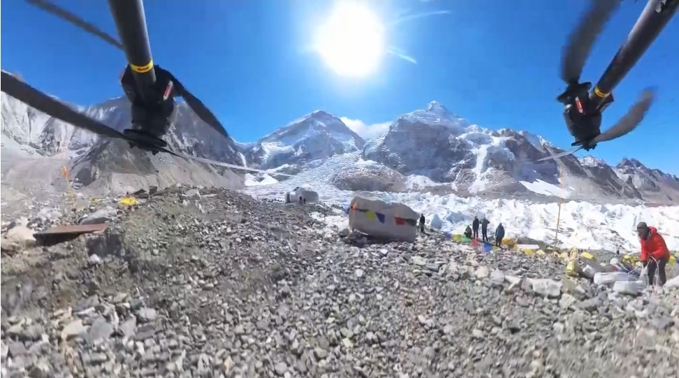 Эверестийн бааз нь далайн түвшнээс дээш ойролцоогоор 5,364 метр (17,598 фут)-т байрладаг бол Нэгдүгээр кэмп 6,065 метр (19,900 фут)-т оршдог. Эдгээр хоёр цэгийн хоорондох агаарын зай нь ойролцоогоор 1.8 миль ( 2.9 км) бөгөөд уг замыг Шерпанууд 6-7 цагийн дотор туулдаг бол дрон ердөө 6-7 минутын дотор туулж чаддаг байна.