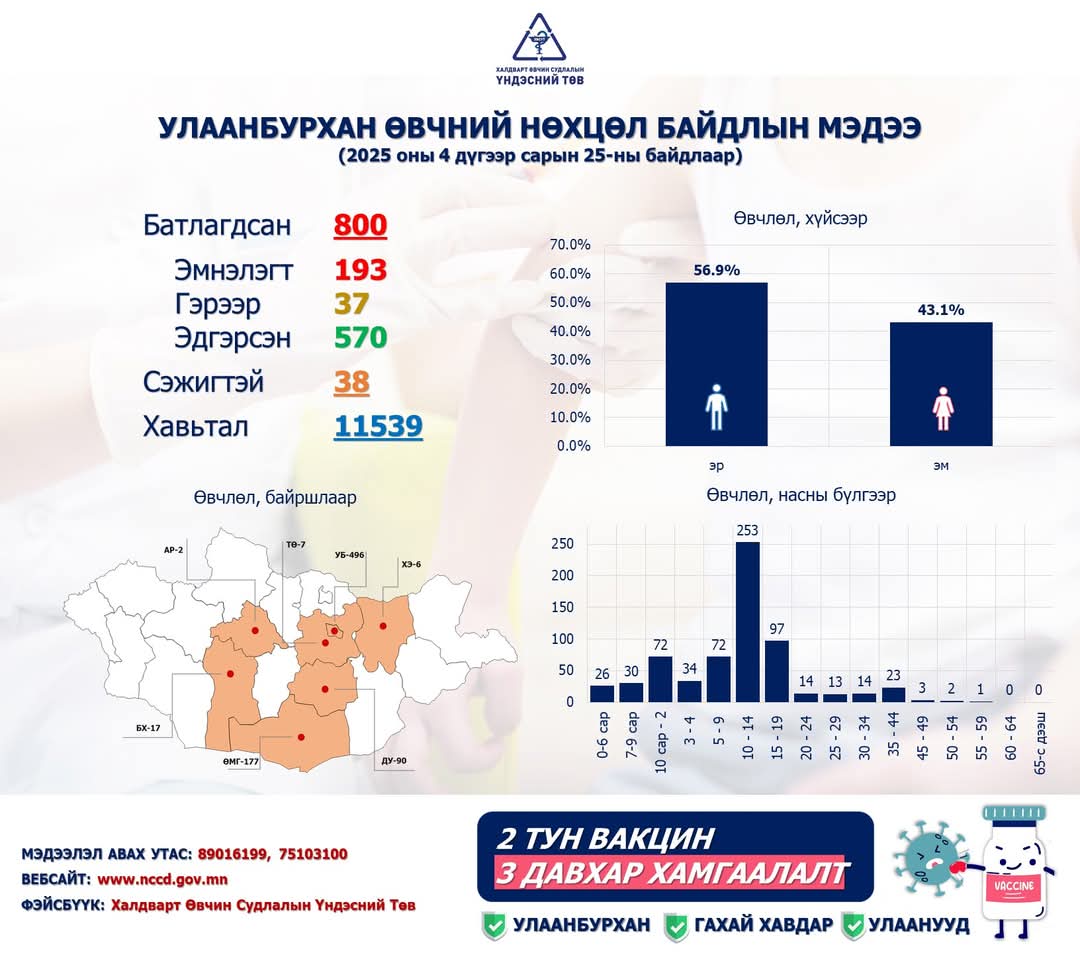 Эрүүл мэндийнхээ төлөө иргэн бүр хариуцлагатай байж, халдвараас сэргийлцгээе. Тодруулах, лавлах зүйл байвал ☎89016199, 75 103 100 утсанд хандана уу.