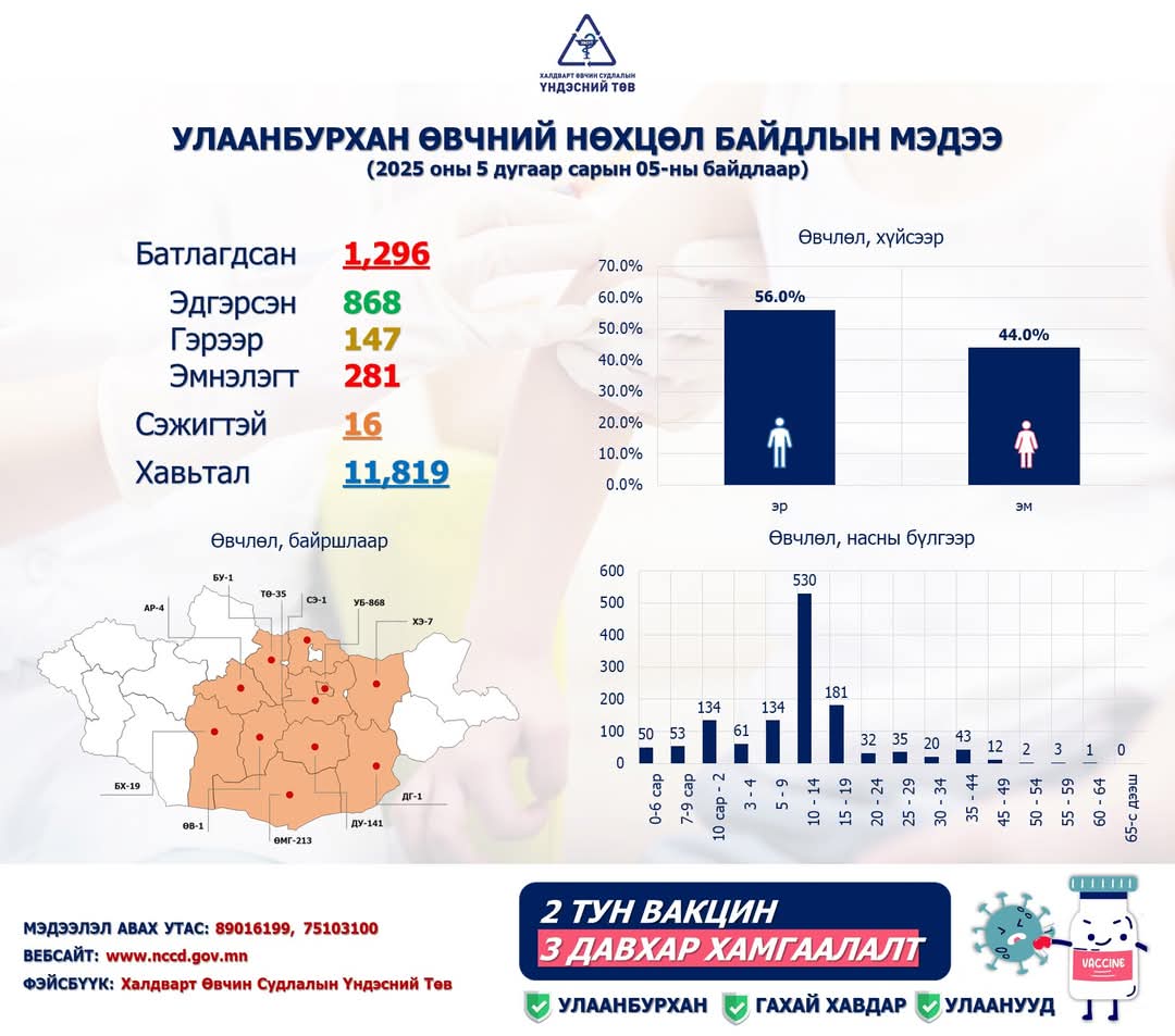 Эхлэл Мэдээ Улаанбурхан өвчний лабораториор батлагдсан тохиолдол 1296 боллоо