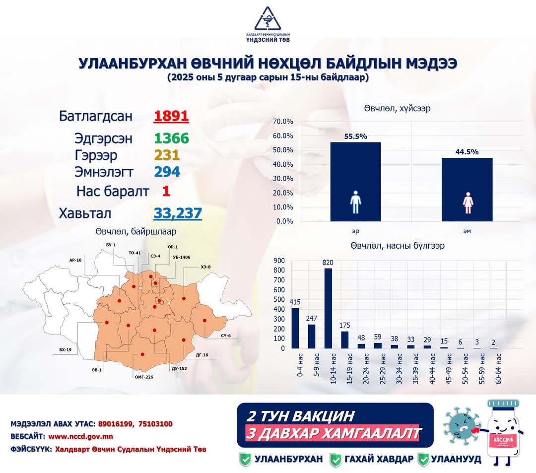 Эрүүл мэндийнхээ төлөө иргэн бүр хариуцлагатай байж, халдвараас сэргийлцгээе. Тодруулах, лавлах зүйл байвал ☎89016199, 75 103 100 утсанд хандана уу.