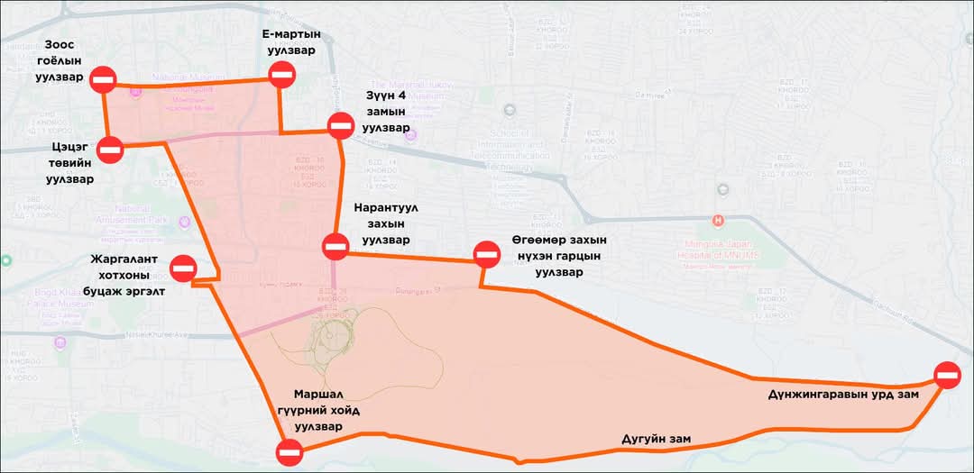 “Улаанбаатар марафон 2025” олон улсын гүйлтийн үеэр (24-нд) дараах байршилд 06-18 цаг хүртэл зам хаана.