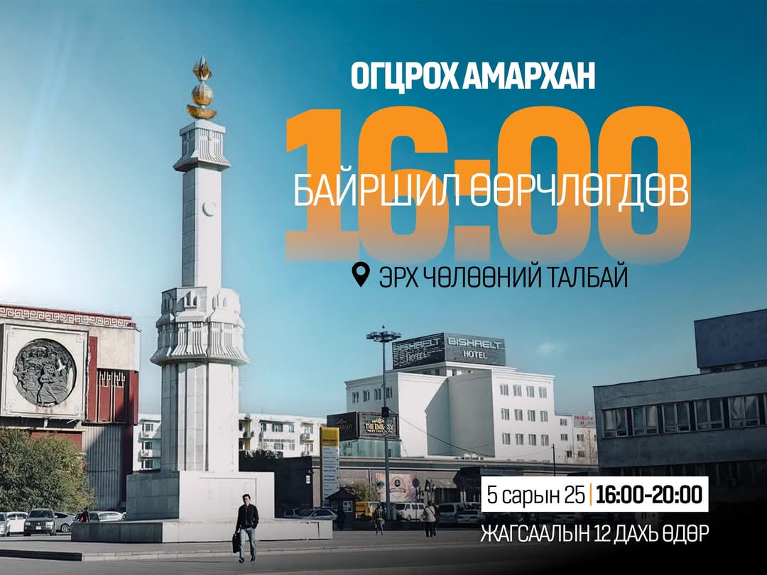 📍 Эрх чөлөөний талбай(Тэнгис кино театрын гадаа, хуучнаар Ялалтын талбай)📅 5-р сарын 25 | 16:00 цагаас