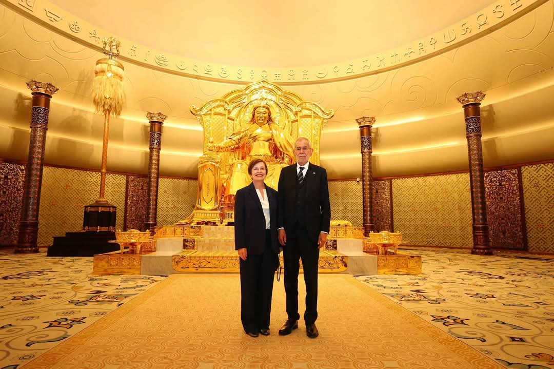 Хүндэт зочдыг Чингис хаан үндэсний музейн захирал С.Чулуун угтан авч, музейн танхимуудаар зочлуулж, манай улсын түүх, соёлын өвийг дэлгэрэнгүй танилцууллаа.Бүгд Найрамдах Австри Улсын Төрийн тэргүүн, гэргийн хамт музейн үзмэрүүдтэй танилцаж, Чингис хаан үндэсний музейн “Хүндэт зочны дэвтэр”-т дурсгалын үг бичиж, гарын үсгээ зурлаа.Монголын түүхэн чухал сурвалж болох 1398 онд бичигдсэн “Төмөр Хутлуг хааны зарлиг” хэмээх бичгийн эх хувь Австрийн үндэсний номын санд хадгалагдаж байгаа бөгөөд “Чингис хаан” музей анх байгуулагдах үед буюу 2020 оны 06 дугаар сард бичвэрийн албан ёсны хуулбарыг музейн сан хөмрөгт оруулсан нь хоёр улсын соёлын салбарын хамтын ажиллагаа, өвийн хадгалалт, таниулан сурталчлах ажилд чухал ач холбогдолтой болсон юм.