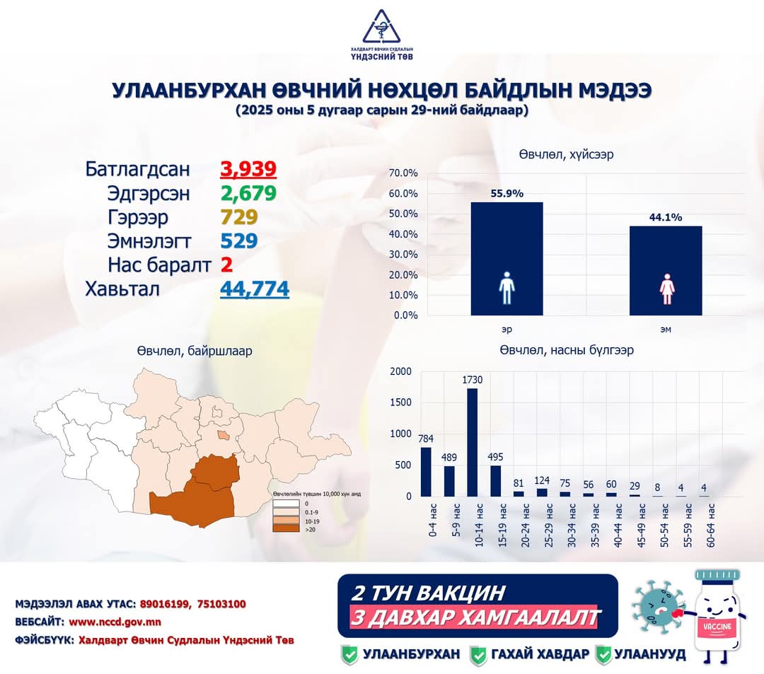 Эрүүл мэндийнхээ төлөө иргэн бүр хариуцлагатай байж, халдвараас сэргийлцгээе. Тодруулах, лавлах зүйл байвал ☎89016199, 75 103 100 утсанд хандана уу.