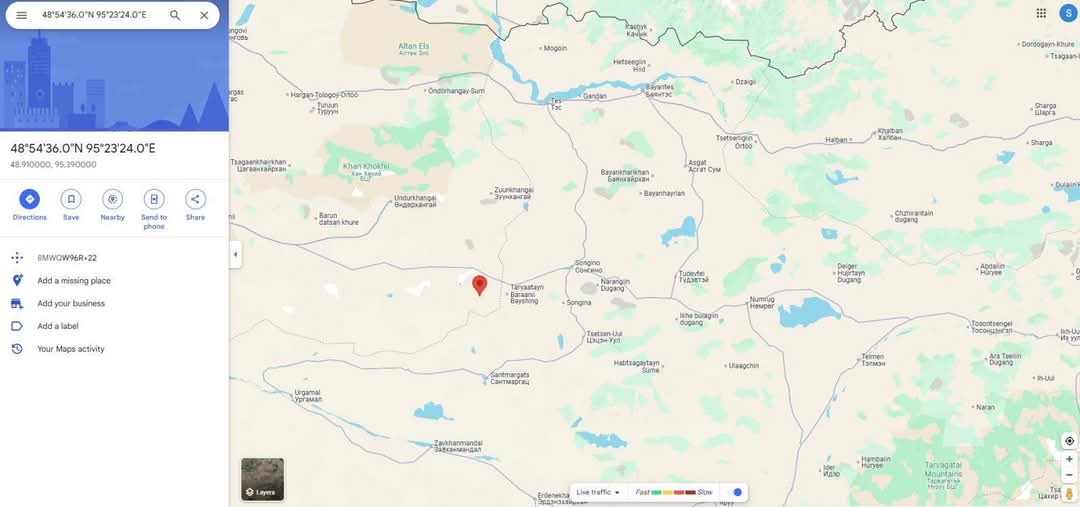 Газар зүйн байршил (Өргөрөг, Уртраг) : 48.91, 95.39