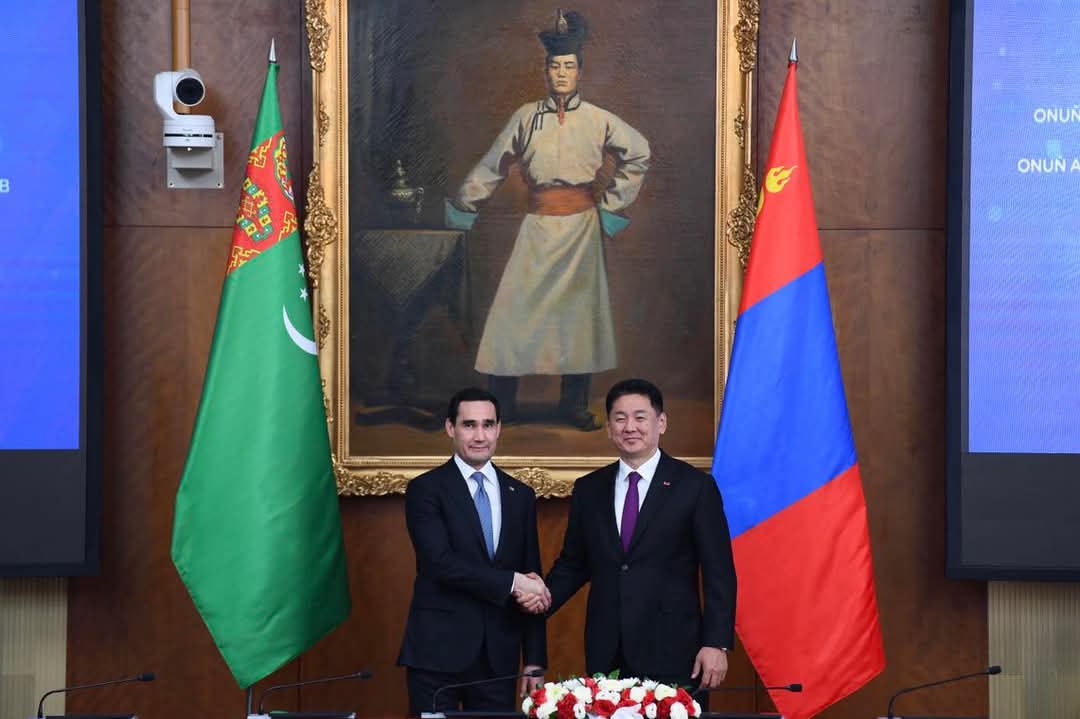 Төрийн тэргүүн нар өнгөрсөн 30 гаруй жилийн харилцааны ололт амжилтыг хэлэлцэж, хамтын ажиллагааг эдийн засгийн агуулгаар баяжуулан хөгжүүлэх хэтийн төлөв, тэргүүлэх чиглэлүүдийн талаар ярилцлаа.Ерөнхийлөгч У.Хүрэлсүх, Монгол Улс Төв Азийн улс орнууд, түүний дотор Туркменистан Улстай хөгжүүлж буй найрсаг харилцааг бэхжүүлэх, хамтын ажиллагааг бүхий л салбарт өргөжүүлэн хөгжүүлэхийн төлөө буйгаа илэрхийллээ.Төрийн тэргүүн нар нэг жил хүрэхгүй хугацаанд харилцан айлчилж байгаа нь хоёр орны ард түмний найрамдал, нөхөрлөлийг улам бүр бататган бэхжүүлнэ гэдэгт итгэлтэй буйгаа тэмдэглэлээ.Ерөнхийлөгч С.Бердымухамедов, Монгол Улсад анх удаа төрийн айлчлал хийж байгаадаа сэтгэл өндөр байгаагаа илэрхийлээд Ерөнхийлөгч У.Хүрэлсүхийн 2024 онд Туркменистан Улсад хийсэн төрийн айлчлалаас хойш хоёр улсын хамтын ажиллагаа олон салбарт эрчимжиж буйг онцоллоо.Өнгөрсөн онд Ашхабад хотноо харилцан тохиролцсон зүйлс эхнээсээ бодит ажил хэрэг болж байгаад Ерөнхийлөгч нар сэтгэл хангалуун байгаагаа илэрхийллээ.
