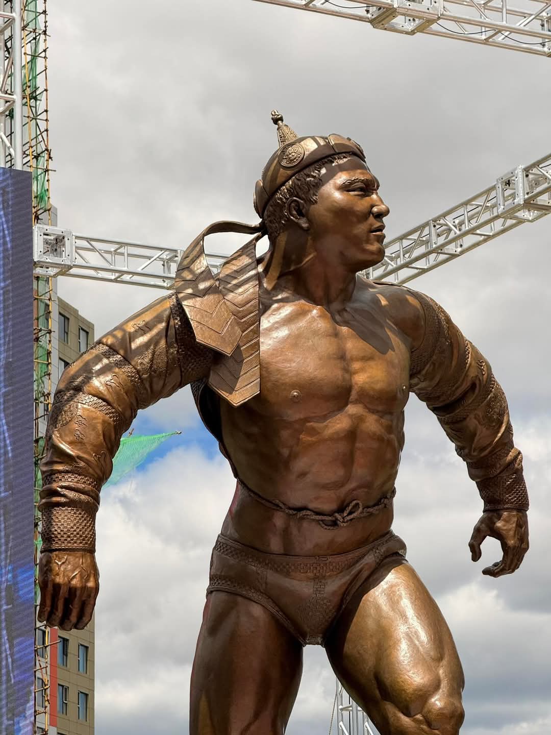 Монгол Улсын Хөдөлмөрийн баатар, гавьяат тамирчин, Дархан аварга Ж.Мөнхбат агсны хөшөө Төв цэнгэлдэх хүрээлэнгийн гадна талбайд сүндэрлэлээ.