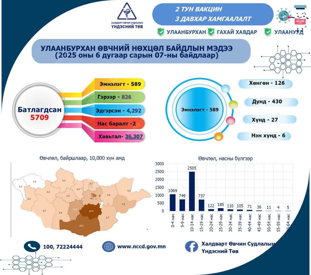 Эрүүл мэндийнхээ төлөө иргэн бүр хариуцлагатай байж, халдвараас сэргийлцгээе. Тодруулах, лавлах зүйл байвал ☎️72224444, 100 утсанд хандана уу.