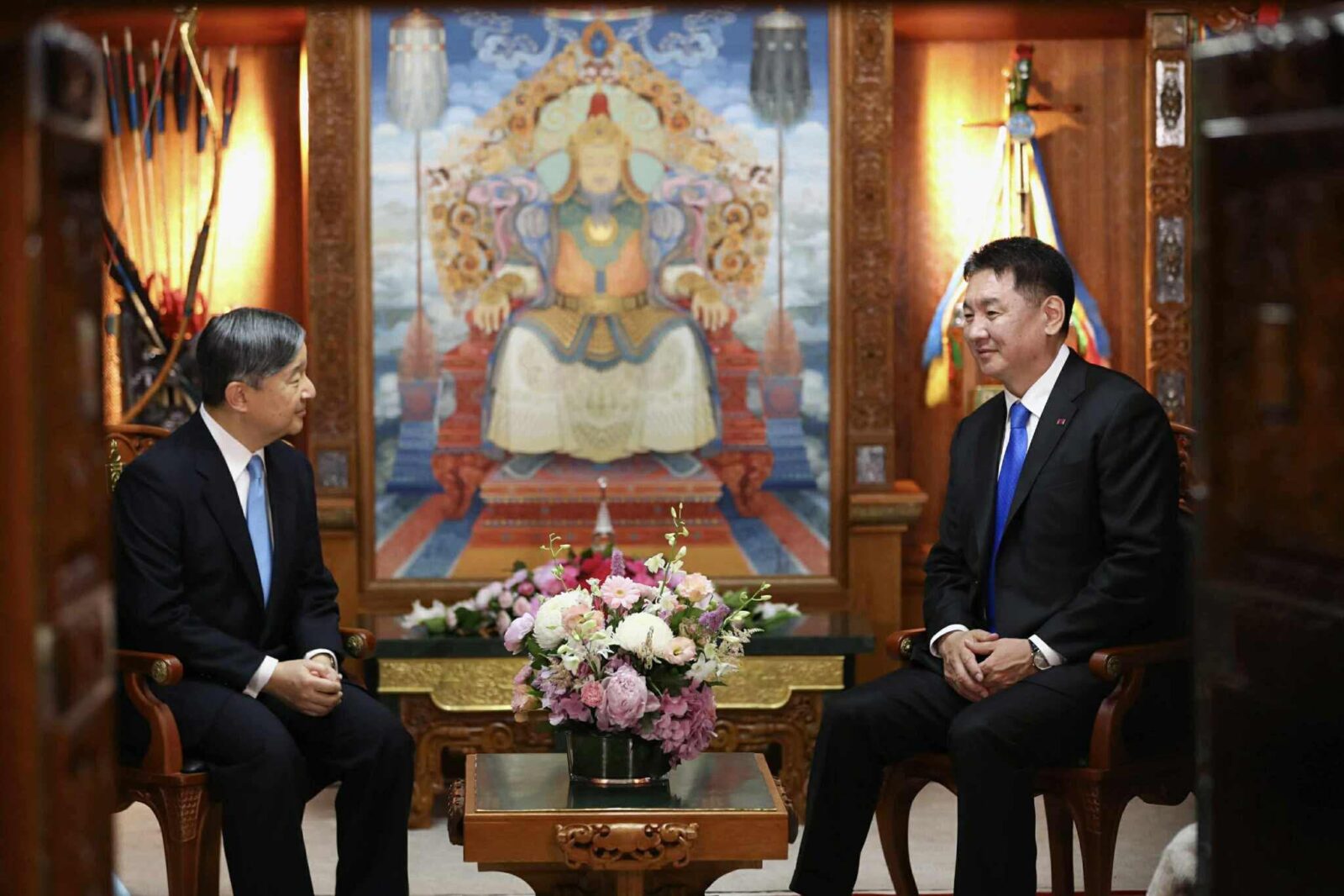 Монгол Улсын Ерөнхийлөгч Ухнаагийн Хүрэлсүх, гэргий Лувсандоржийн Болорцэцэг болон Япон Улсын Цог Жавхлант Эзэн Хаан Нарүхито, Эрхэм дээд Хатан Масако нар албан ёсны уулзалт хийлээ. Ерөнхийлөгч У.Хүрэлсүх Япон Улсаас Монгол Улсад Эзэн Хааны түвшинд анх удаа хийж буй Цог Жавхлант Эзэн Хаан Нарүхито, Эрхэм дээд Хатан Масако нарын төрийн айлчлал нийтлэг үнэт зүйлс, харилцан итгэлцэлд суурилсан хоёр улсын харилцааны түүхэнд алтан үсгээр бичигдэн үлдэж байгааг онцлон тэмдэглэлээ.Монгол Улс, Япон Улсын “хүн төвтэй” “Энх тайван, хөгжил цэцэглэлтийн төлөөх Тусгай стратегийн түншлэл”-ийг гүнзгийрүүлж, ард иргэд хоорондын ган бат найрамдал, нөхөрлөлийг батжуулан бэхжүүлэхэд нэн чухал ач холбогдолтой гэдэгт итгэл төгс байгаагаа илэрхийллээ.Монгол Улс дахь ардчиллыг баталгаажуулж, нийгэм, эдийн засгийн тогтвортой хөгжлийг дэмжих, хүний нөөцийг бэхжүүлэхэд Япон Улс, Японы ард иргэд халуун дотно, сэтгэл шингэсэн тууштай дэмжлэг үзүүлж ирсэнийг Монголын төр, Засгийн газар, ард түмэн өндрөөр үнэлж, талархаж байдгийг онцлов.Япон Улсын Цог Жавхлант Эзэн Хаан Нарүхито, Эрхэм дээд Хатан Масако нар төрийн айлчлалынхаа хүрээнд хүн төрөлхтний соёлын өв, Монгол түмний эв нэгдэл, тусгаар тогтнолын бэлгэдэл болсон Үндэсний их баяр наадамд хүндэт зочдын хувиар оролцож буйг ард иргэд талархалтай хүлээн авч буйг тэмдэглэв.