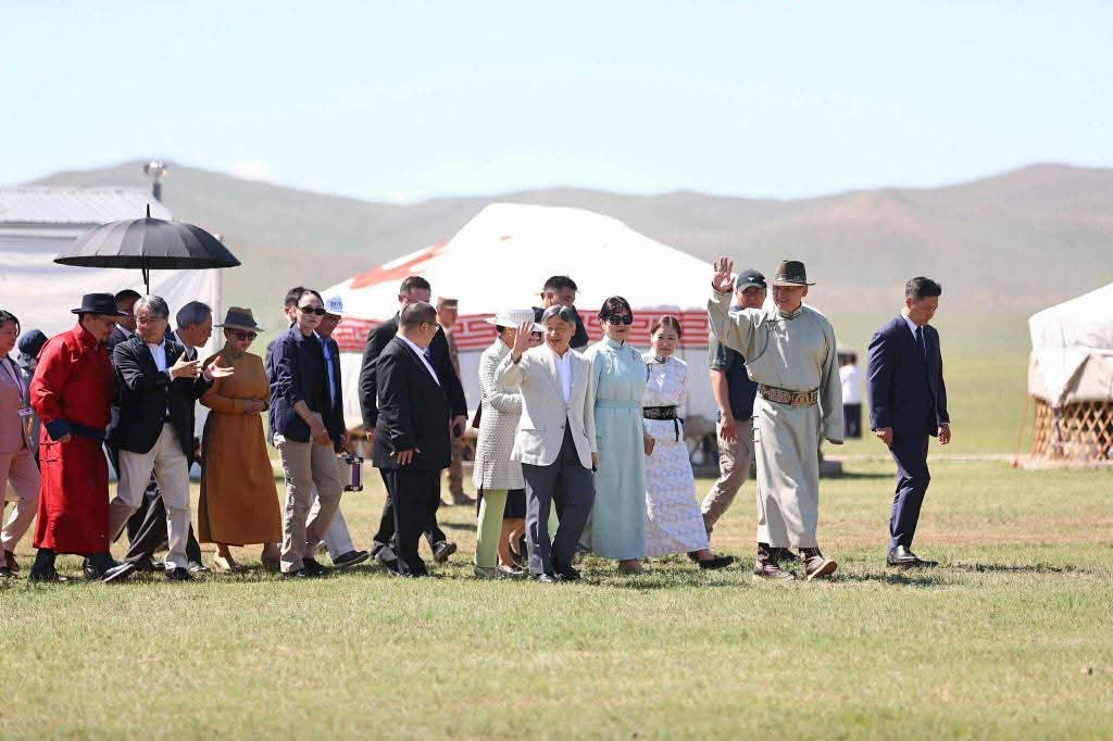 Монгол Улсын Ерөнхийлөгч Ухнаагийн Хүрэлсүх, гэргий Лувсандоржийн Болорцэцэг, Япон Улсын Цог Жавхлант Эзэн Хаан Нарүхито, Эрхэм дээд Хатан Масако болон Улсын Их Хурлын дарга Дашзэгвийн Амарбаясгалан, Монгол Улсын Ерөнхий сайд Гомбожавын Занданшатар нар өнөөдөр Хүй долоон худагт хурдан соёолонгийн уралдаан үзэж сонирхлоо.Соёолонгийн уралдаанд Ховд аймгийн Мянгад сумын уугуул, Улсын манлай уяач З.Мэндсайханы хул үрээ түрүүлж, торгон жолоогоо өргүүллээ.