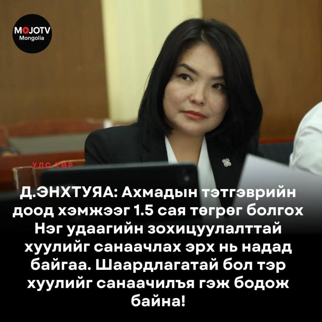 С.Эрдэнэбат, Д.Энхтуяа, Б.Пүрэвдорж зэрэг арваад тооны УИХ-ын гишүүн чуулганы хуралдаан дээр ахмадуудынхаа дайсан үг, захиасыг уламжилж “Тэтгэврийг нь нэмээд өгөөч” гэхийг олонтаа сонслоо. Эдгээр гишүүн тус бүртээ зохих хууль, журмын дагуу ахмадуудынхаа тэтгэврийн доод хэмжээг 1.500.000 төгрөг болгуулахын төлөө хичээж зүтгэж байна аа.
