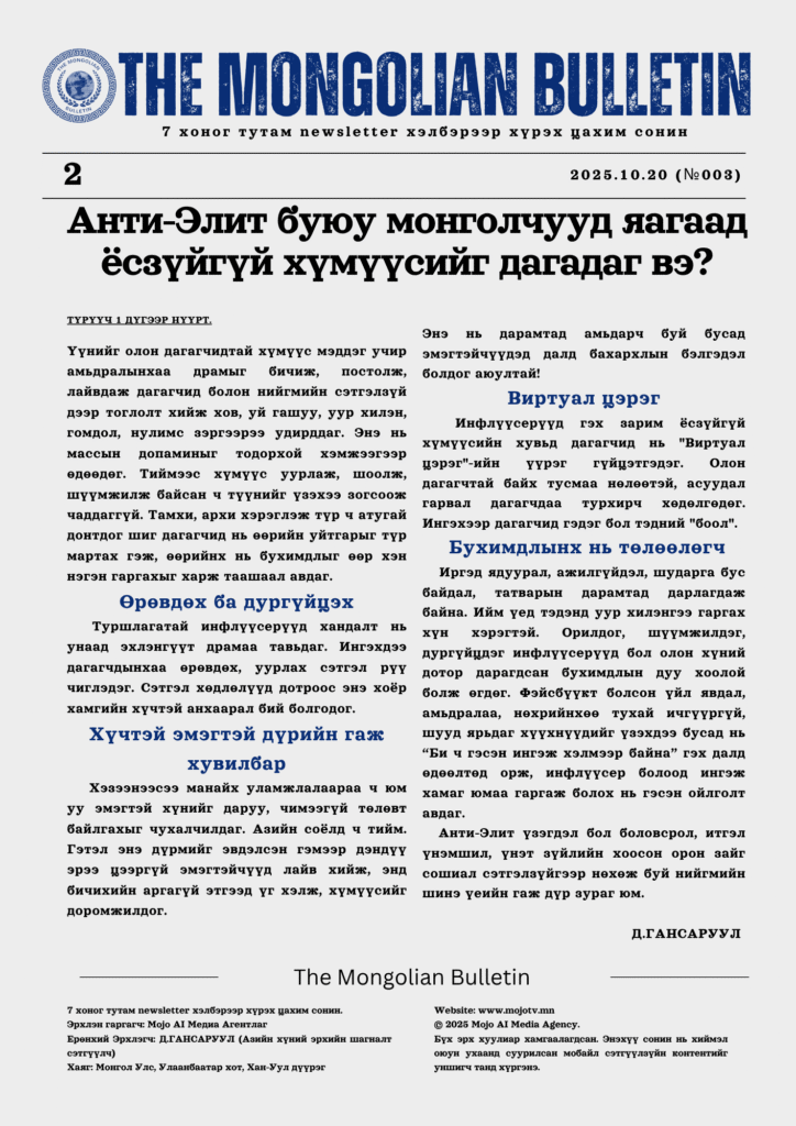 📰 “The Mongolian Bulletin” юм уншдаг, боддог, мэдэрдэг хүмүүст зориулсан сонин.