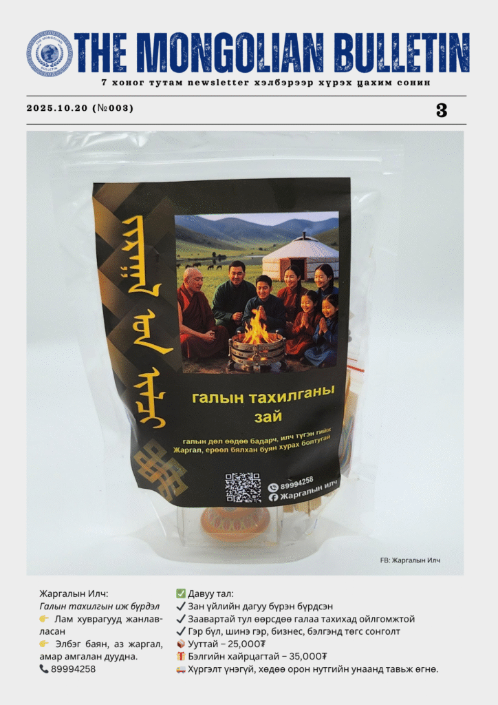 FB: The Mongolian Bulletin (Чатаар захиалга авч байна)