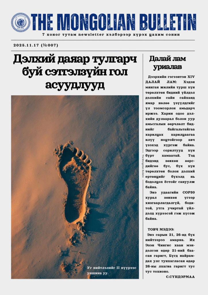 “The Mongolian Bulletin” сонины нийтлэлийг хүргэж байна.