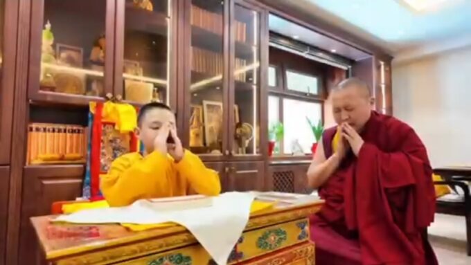 Монголын бурханы шашны тэргүүн Аравдугаар Богд Жэвзүндамба хутагт багш дээдсээсээ номын шимийг хүртэж байна