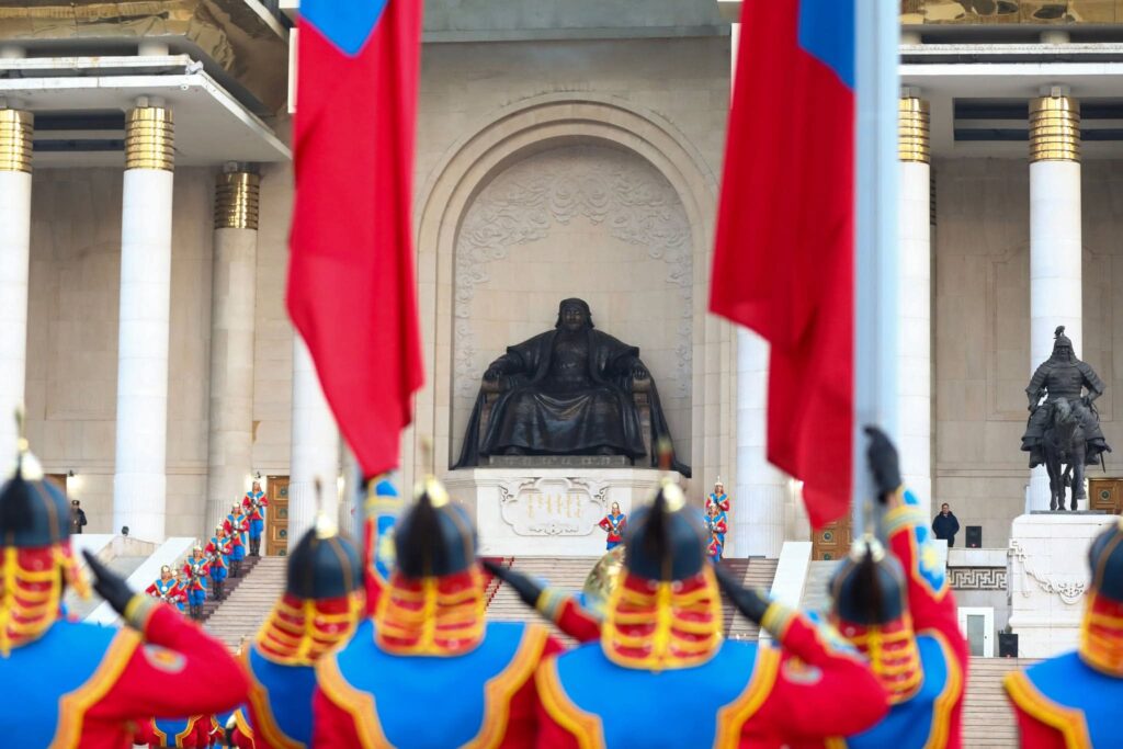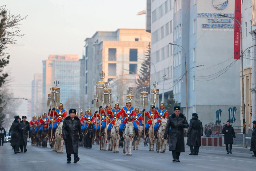 Эзэн Богд Чингис хааны мэндэлсний 863 жилийн ой, “Монгол бахархлын өдөр”-ийг тохиолдуулан жанжин Д.Сүхбаатарын талбайд Төрийн далбааг мандуулж, Төрийн есөн хөлт Их цагаан тугийг цэнгүүллээ.