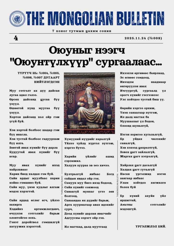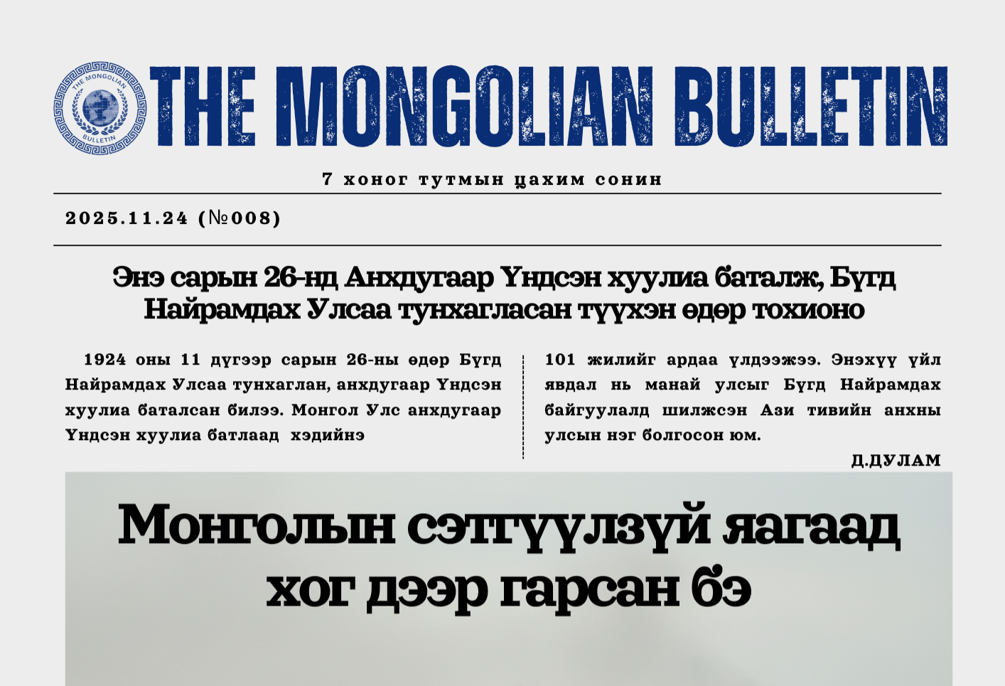 7 хоног тутмын The Mongolian Bulletin дижитал сонины №008 дугаар Уншигч, Захиалагч танд хүрч байна.