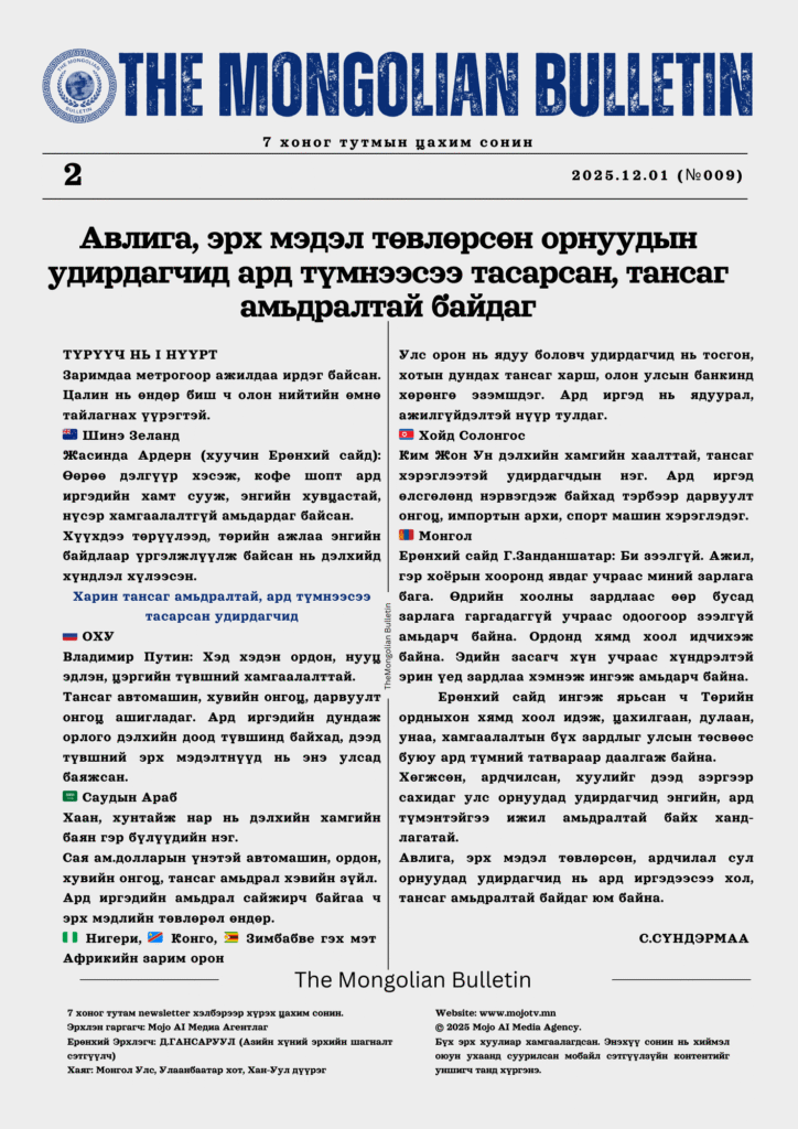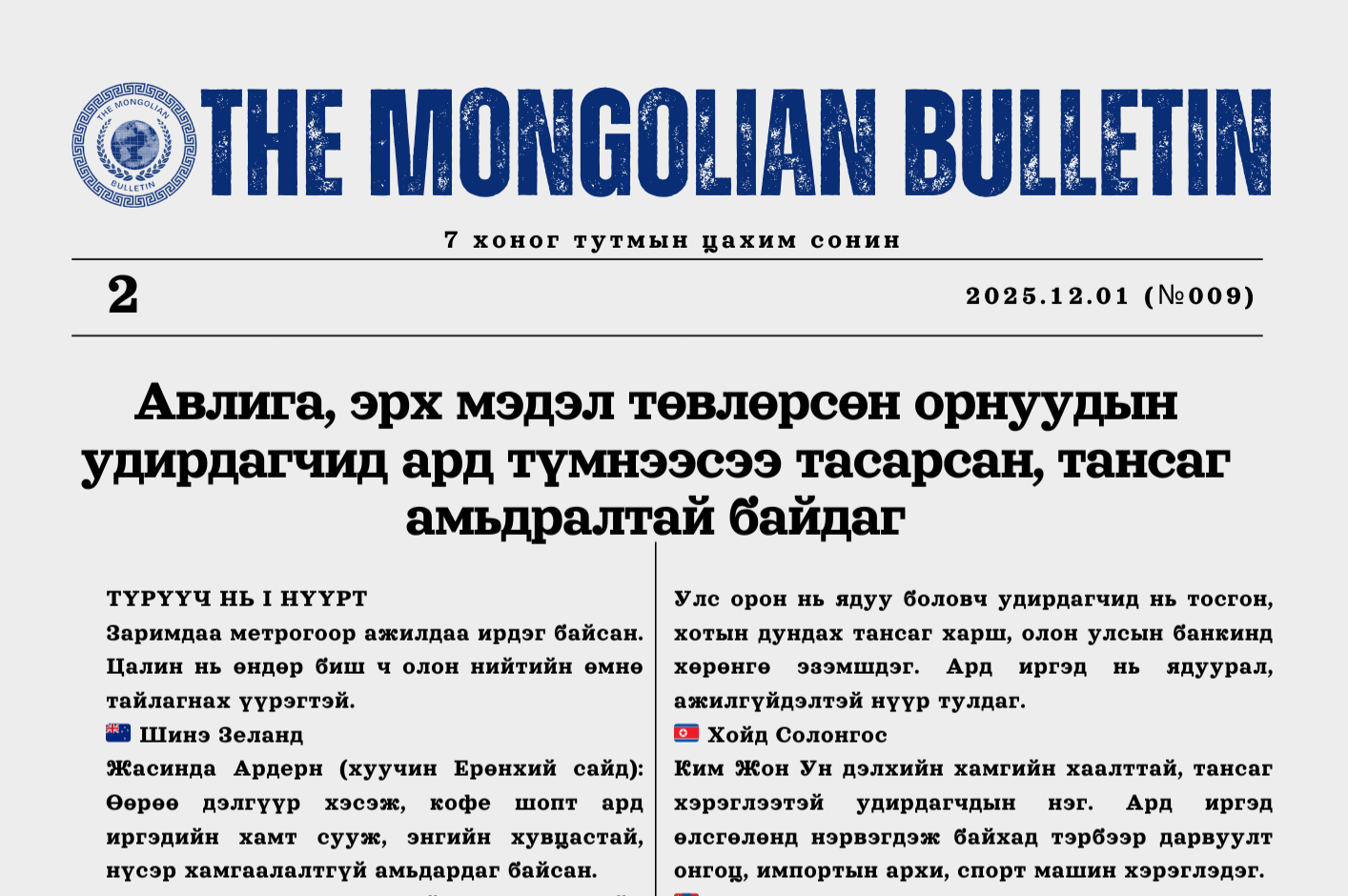 The Mongolian Bulletin сонины нийтлэлийг хүргэж байна.