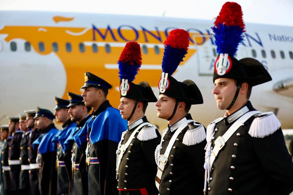“Фиучимино” олон улсын нисэх онгоцны буудалд тус улсын Парламентын Төлөөлөгчдийн танхимын гишүүн, Итали-Монголын парламентын найрамдлын бүлгийн дарга Никола Карэ, Гадаад хэрэг, олон улсын хамтын ажиллагааны яамны Дипломат ёслолын газрын захирал Бруно Паскуино, Монгол Улсад суугаа Онц бөгөөд Бүрэн эрхт Элчин сайд Жованна Пиккаррэта, Гэгээн Ширээт Улсын Төрийн нарийн бичгийн дарга нарын газрын Ёслолын хэлтсийн дэд дарга Бруно Бастос Линс, монголын талаас тус улсад суугаа Онц бөгөөд Бүрэн эрхт Элчин сайд Ц.Нарантунгалаг, Гэгээн Ширээт Улсад хавсран суугаа Онц бөгөөд Бүрэн Эрхт Элчин сайд Д.Гэрэлмаа нар угтан авлаа.Энэ айлчлал Монгол Улс, Бүгд Найрамдах Итали Улс хооронд дипломат харилцаа тогтоосны 55 жилийн ойн хүрээнд болж байна.