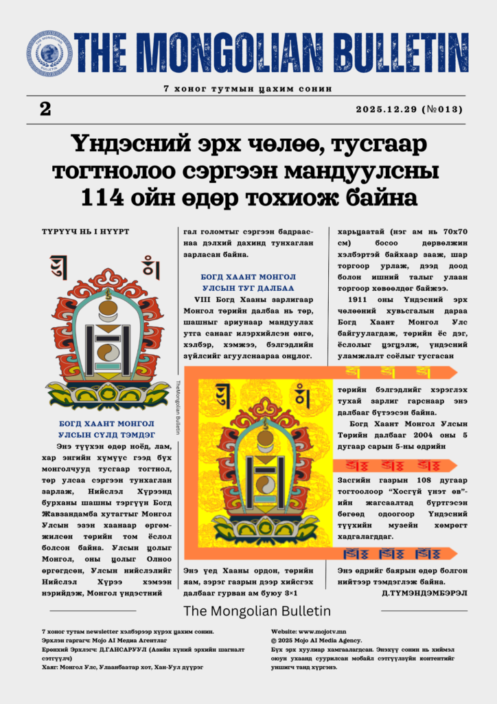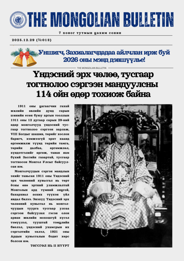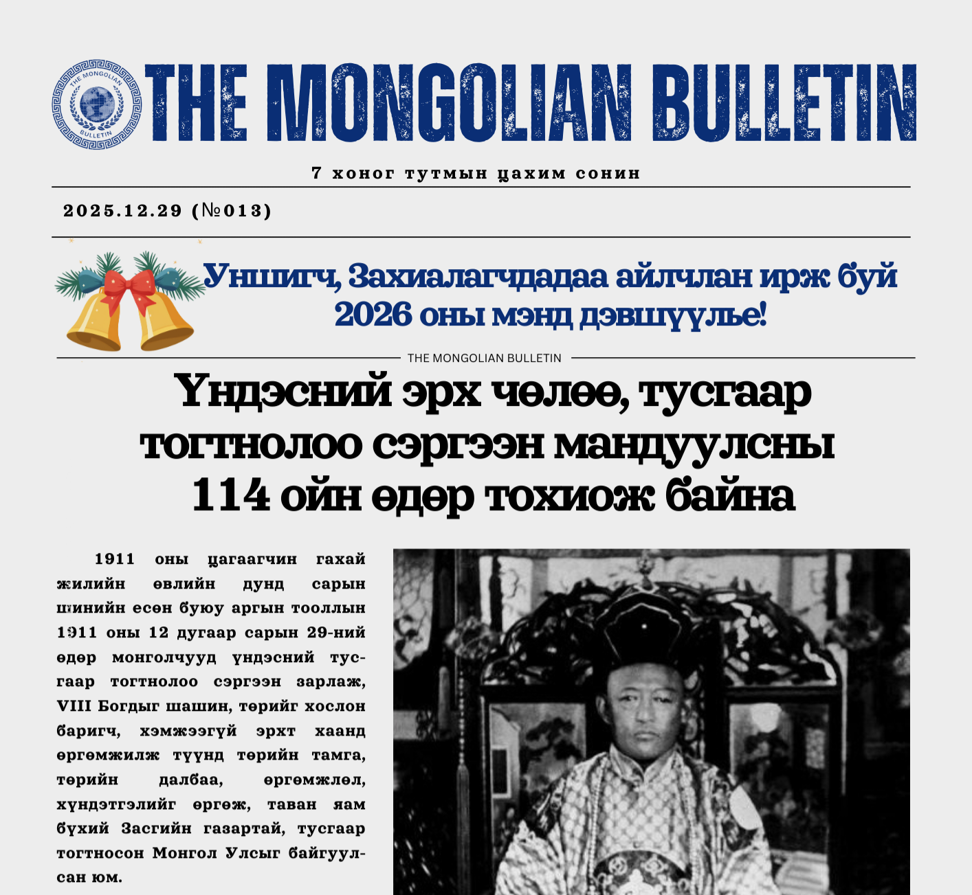 7 хоног тутмын The Mongolian Bulletin дижитал сонины №013 дугаар уншигч танд хүрч байна.