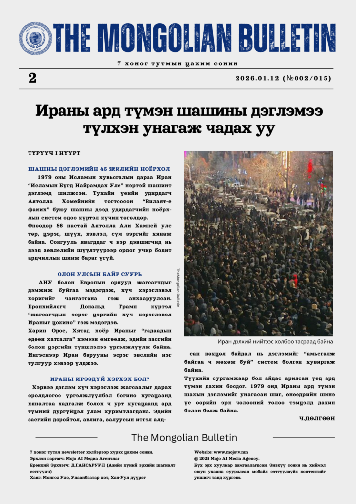 2025.12.29 | Mojo AI Media Agency 7 хоног тутмын The Mongolian Bulletin...