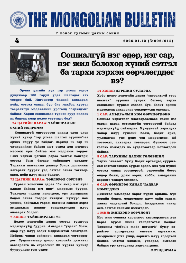 7 хоног тутам newsletter хэлбэрээр уншигчдадаа хүрдэг The Mongolian Bulletin дижитал сонины №015 дугаар уншигч танд хүрч байна.