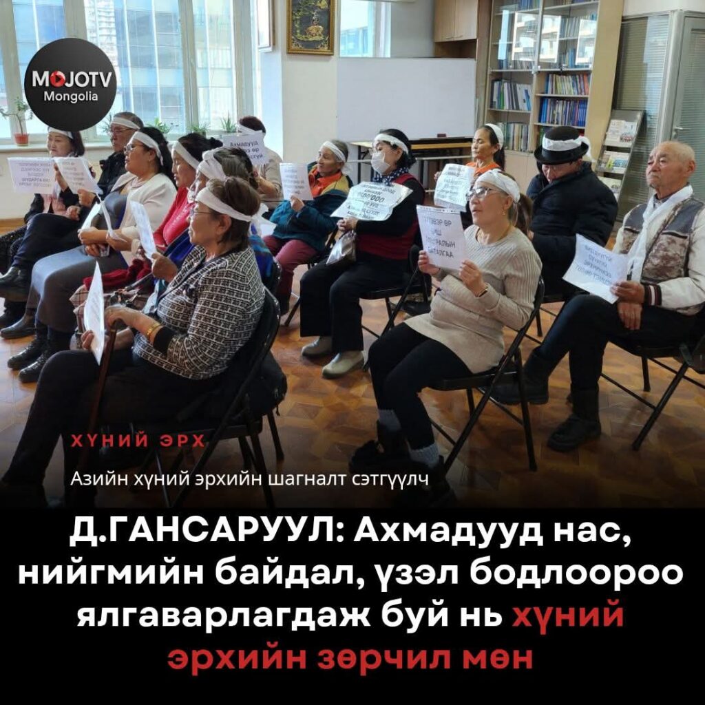 Азийн хүний эрхийн шагналт сэтгүүлч Д.ГАНСАРУУЛ: Өнгөрсөн оны зургадугаар сараас эхэлсэн ахмадуудын “Чимээгүй суулт” явсаар “Монголын ахмадын дуу хоолой хөдөлгөөн” болж өргөжиж, орон нутгийн ахмадууд ч нэгдсэн.