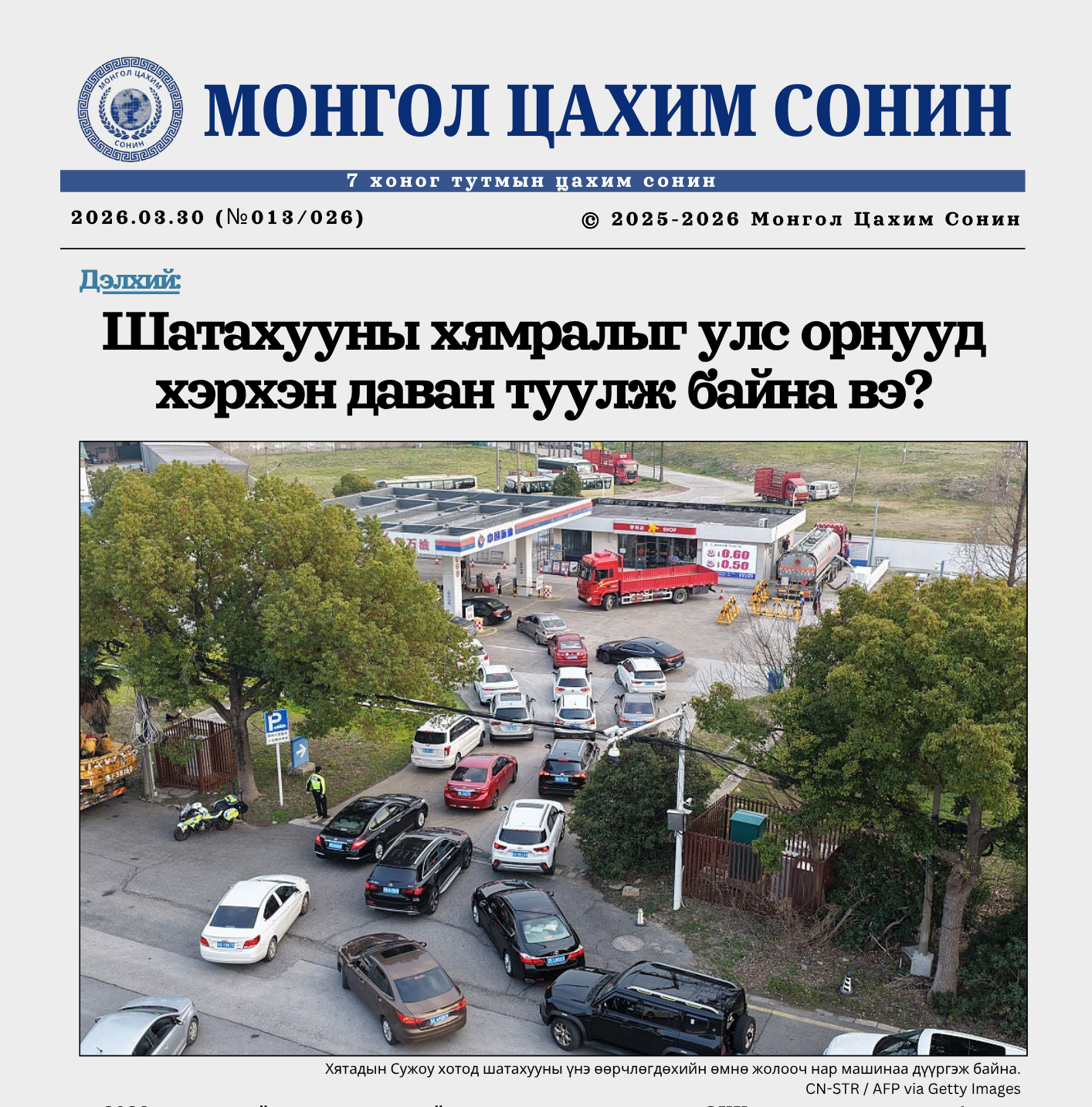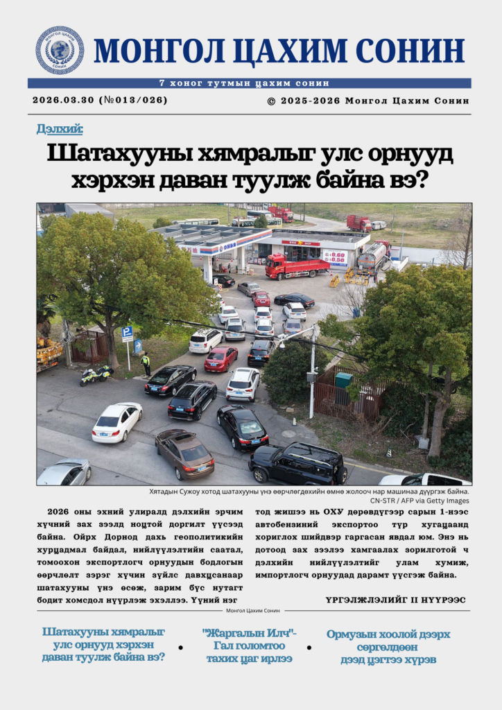 7 хоног тутмын МОНГОЛ ЦАХИМ СОНИНЫ №026 дугаар уншигч, захиалагчдадаа хүрч байна.