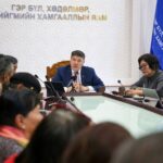 Гэр бүл, хөдөлмөр, нийгмийн хамгааллын сайд Т.Аубакир холбогдох албаны хүмүүсийн хамт тэтгэврийн...