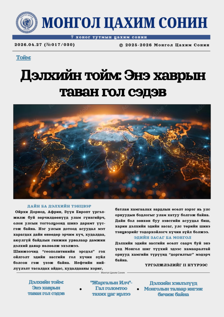 7 хоног тутмын МОНГОЛ ЦАХИМ СОНИНЫ №030 дугаар уншигч, захиалагчдадаа хүрч байна.